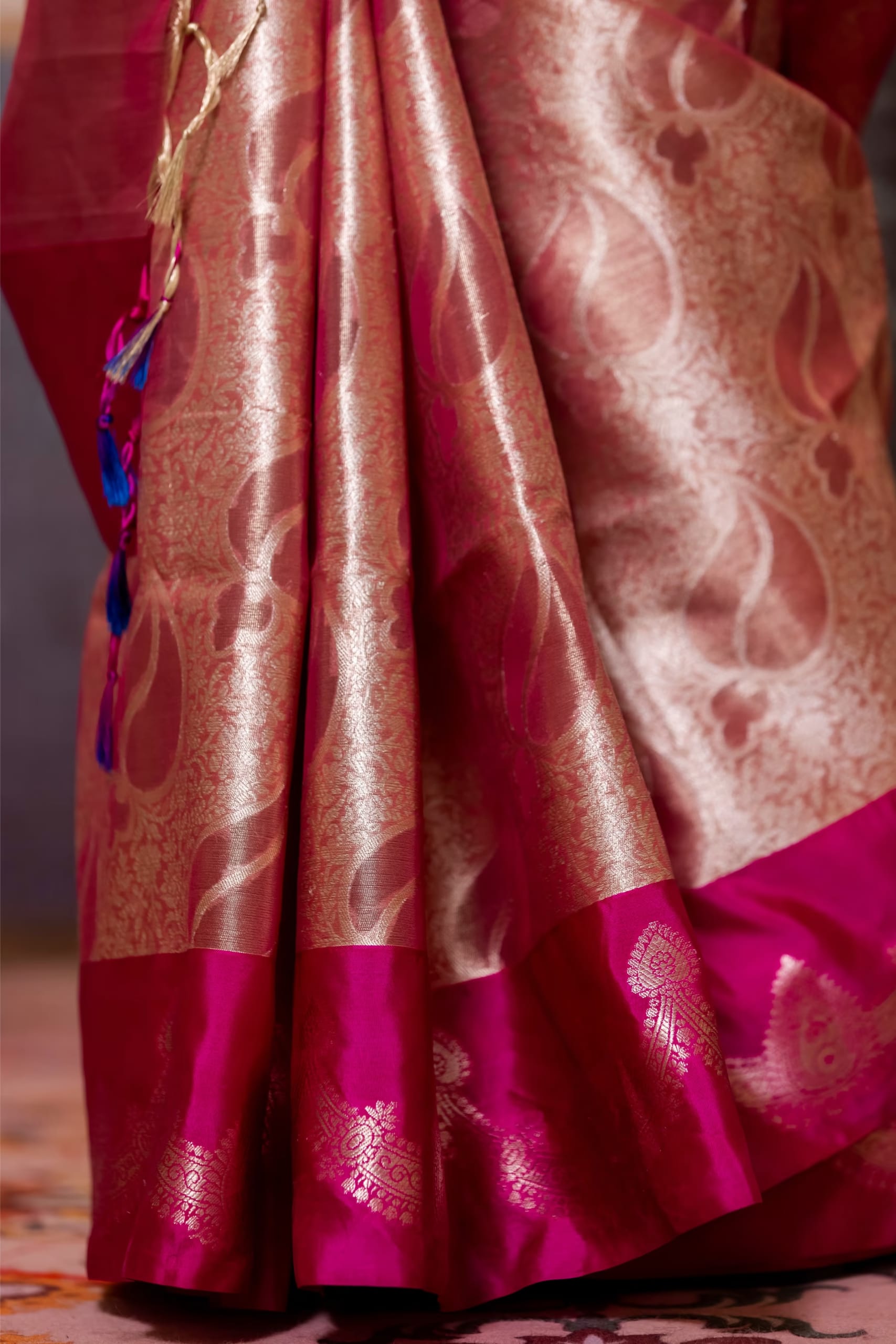 Gold Pink Glass Tissue Silk Saree