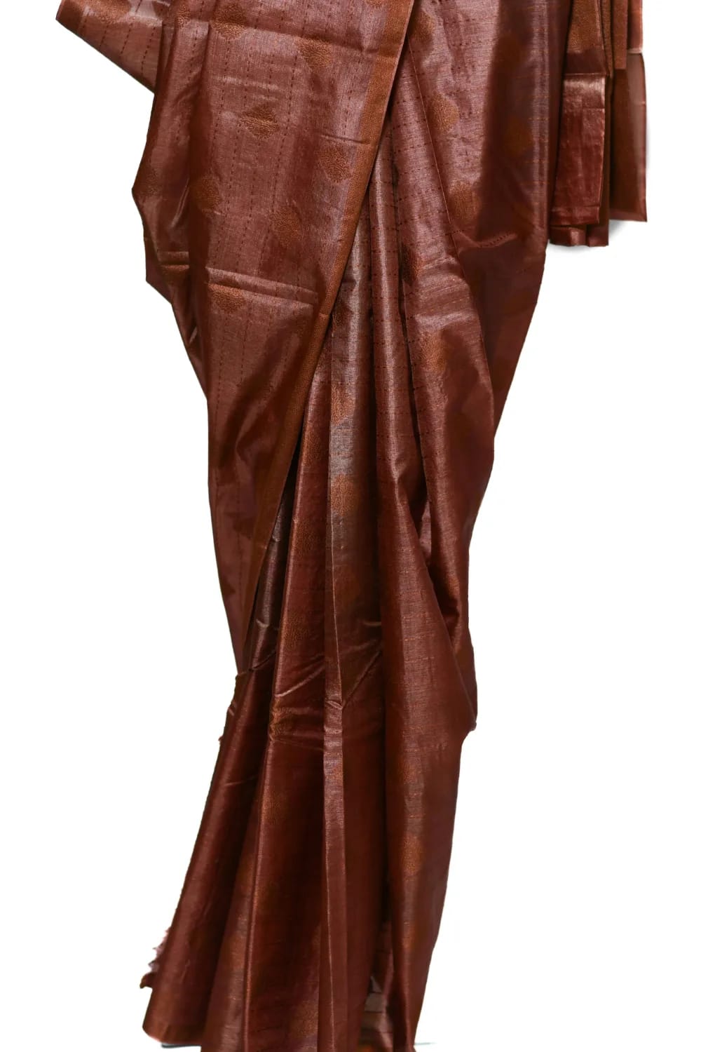 Drape yourself in understated sophistication with the Pure Tussar Silk Fancy Saree from RR Creations. Crafted for elegant celebrations, this embellished party wear saree brings out a rustic charm with its textured Tussar silk. Ideal for festive and special gatherings, it offers a graceful fall and airy comfort. Paired with an unstitched blouse, this saree complements your ethnic wardrobe beautifully, blending tradition with minimalistic finesse. Its light weight makes it perfect for long events with ease and poise.